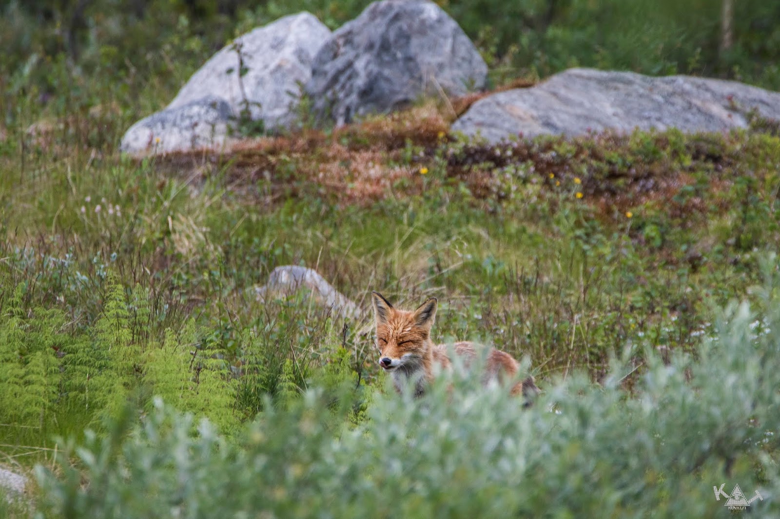 Nämäkin ovat tulleet jo helteitä ja ötökkää karkuun kaiketi tunturista, koko ajan kuuluu jostain nurkan takaa rahinaa ja sorinaa ja isot sarvethan sitten siellä näkyy.