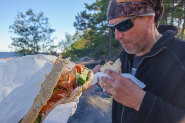 Nautittiin saunasta ja grilliruuasta, eli kaikkea muuta kuin eräilyä taas, tsori! Välillä tarvitsee vaan näköjään tämmöistäkin, ja mikä parasta jos sen pääsee tekemään luonnon keskelle kuitenkin.