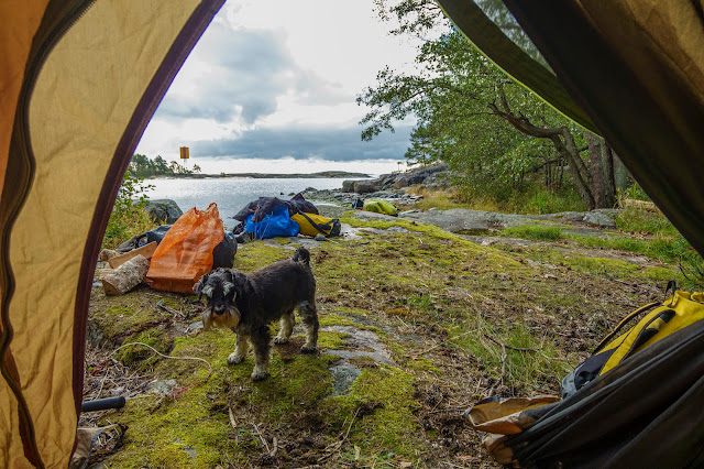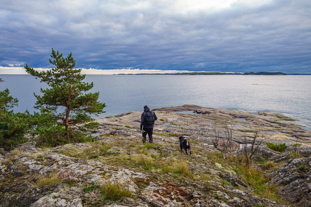 Mutta ei se meitä nyt pidätellyt maissa vaan säätä uhmaten laskettiin kumivene sateisesta Siuntiosta, ja suunnattiin jo tutuiksi tulleita Inkoon saaria kohti.